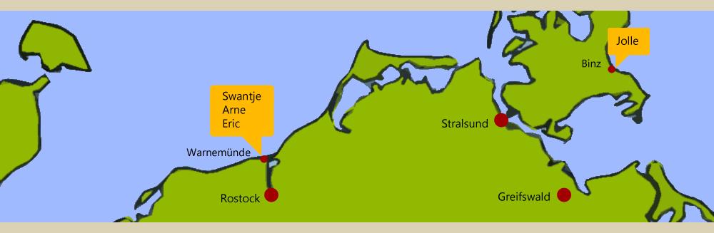 Die Ferienwohnungen Swantje, Arne und Eric (Warnemünde) sowie Jolle (Binz) sind die idealen Ausgangspunkte für Ihren Urlaub. Modern ausgestattet, mitten in Ort, nur wenige Schritte von Promenade und Strand enfernt.