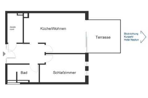 ▪ Südwest-Terrasse Richtung Kurpark und Hotel Neptun