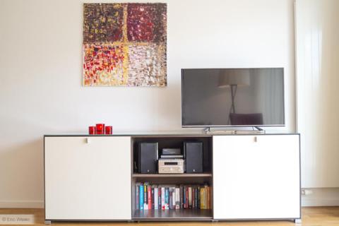 ▪ Wohnzimmer mit HD-Fernseher, WLAN, Digitalradio mit Bluetooth-Schnittstelle und USB-Anschluss, DAB-Empfang und CD